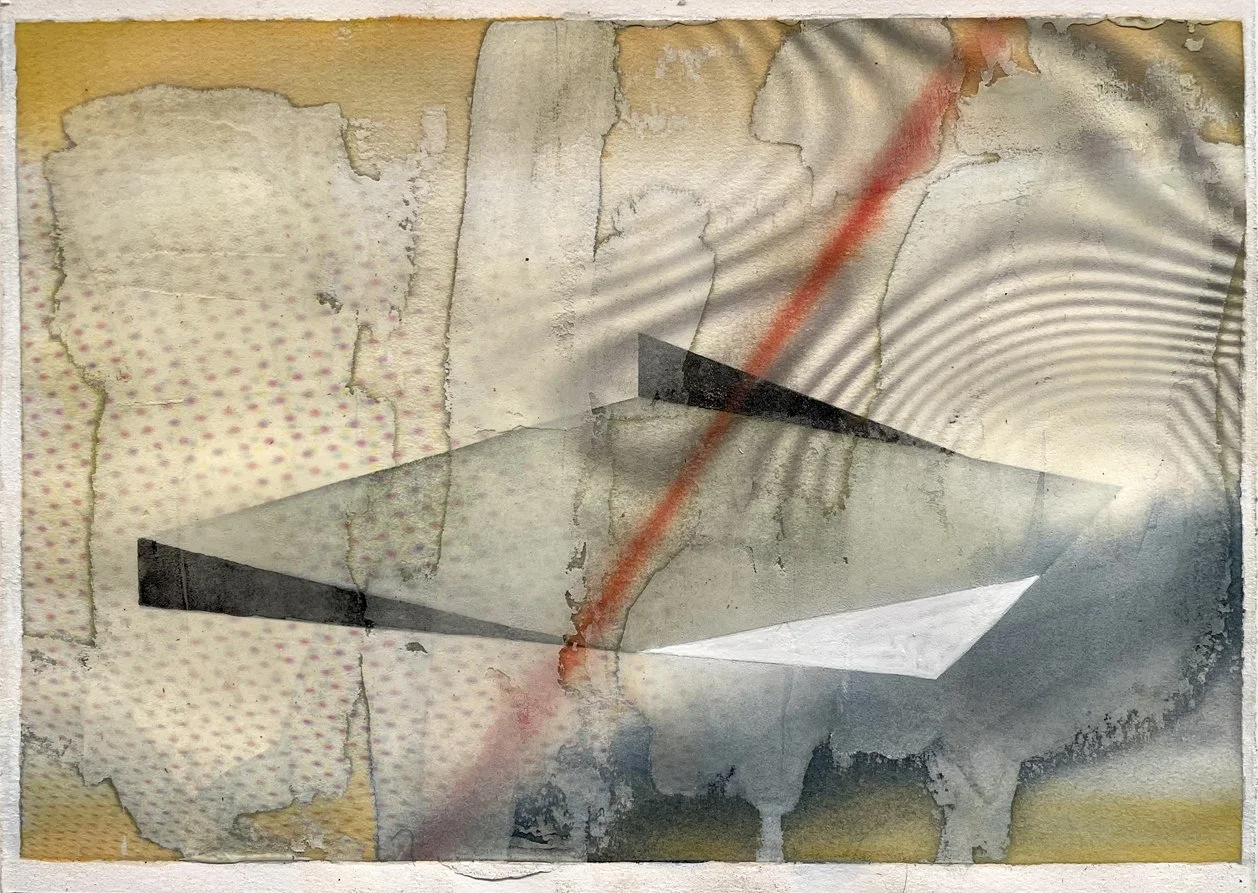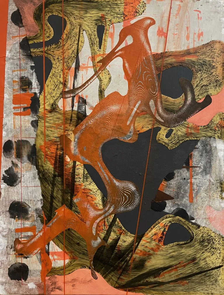 Jeffrey Bishop | Sidewinder #1 | 2024 | Acrylic and Collage on Panel | 17 x 14 inches | Credit: courtesy of the artist.